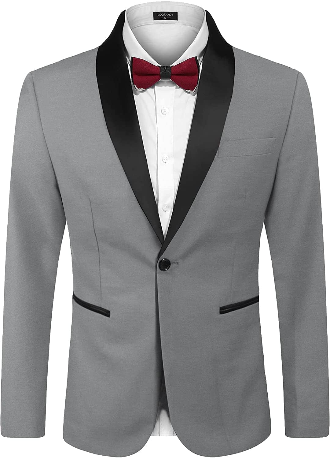 - BLAZER COAT DESIGN-- Contrast color lapel, slim fit, two front fake pockets, one button closure, three inner pockets, four button decor on cuffs, classic suit coat for men